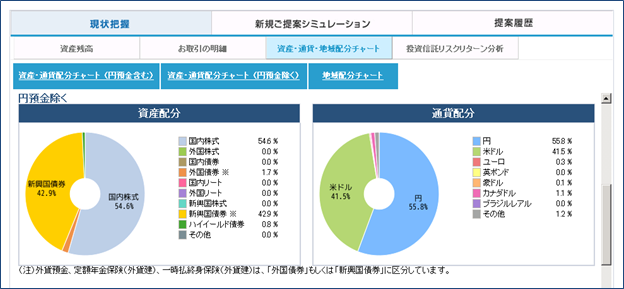 - 運用する金融商品の資産配分やリスク・リターンの度合いについて、お客さまに分かりやすくご説明するため、ポートフォリオ提案ツールを導入しております。