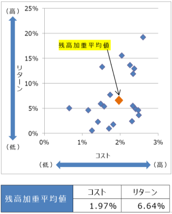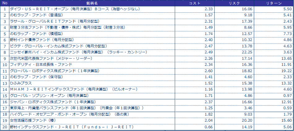 投資信託の預り残高上位20銘柄のコスト・リターン