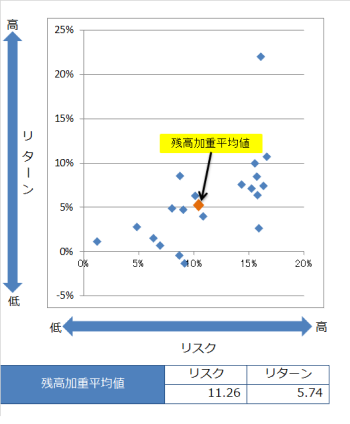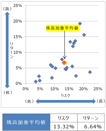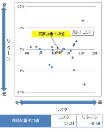 投資信託の預り残高上位20銘柄のリスク・リターン