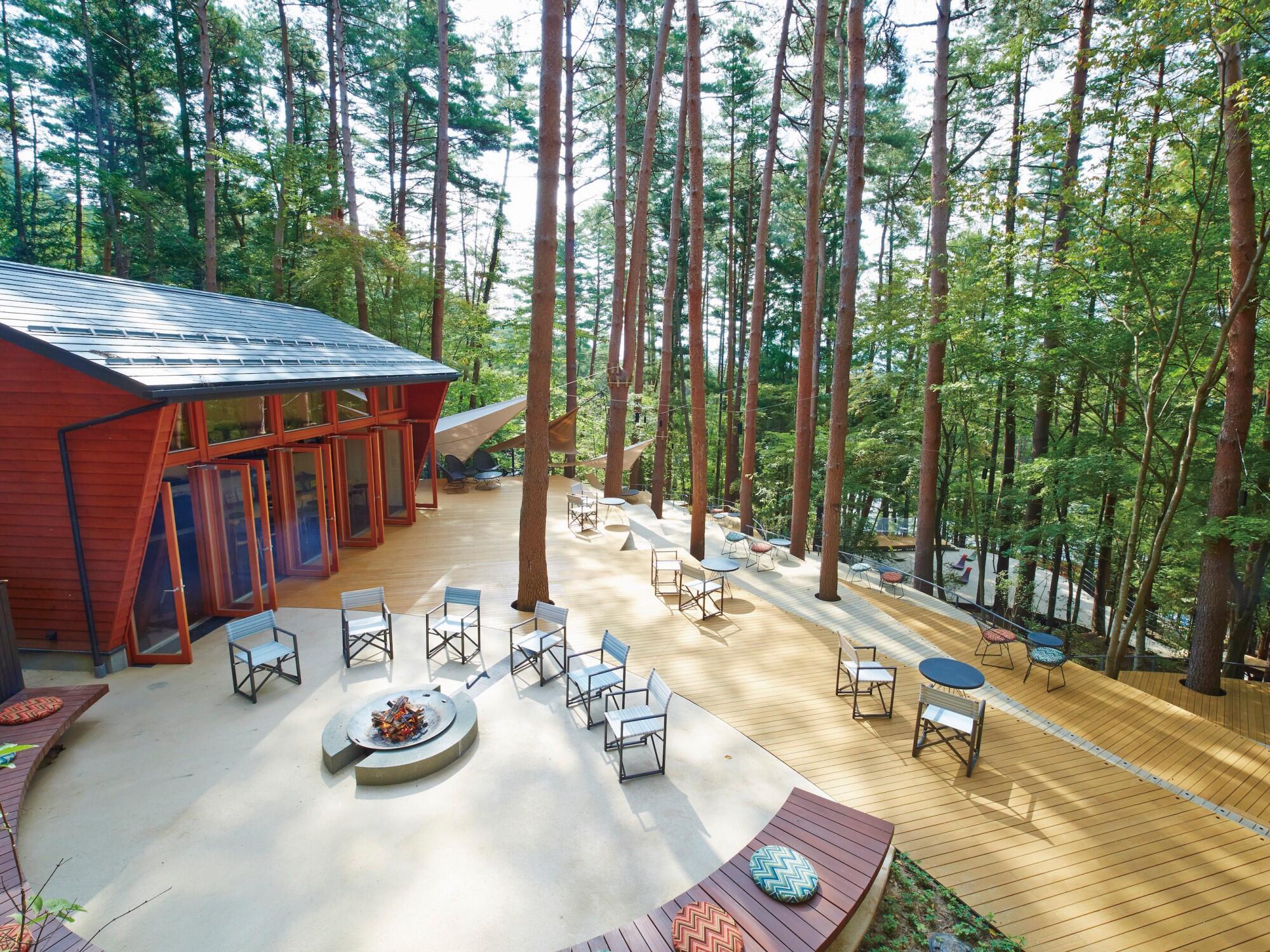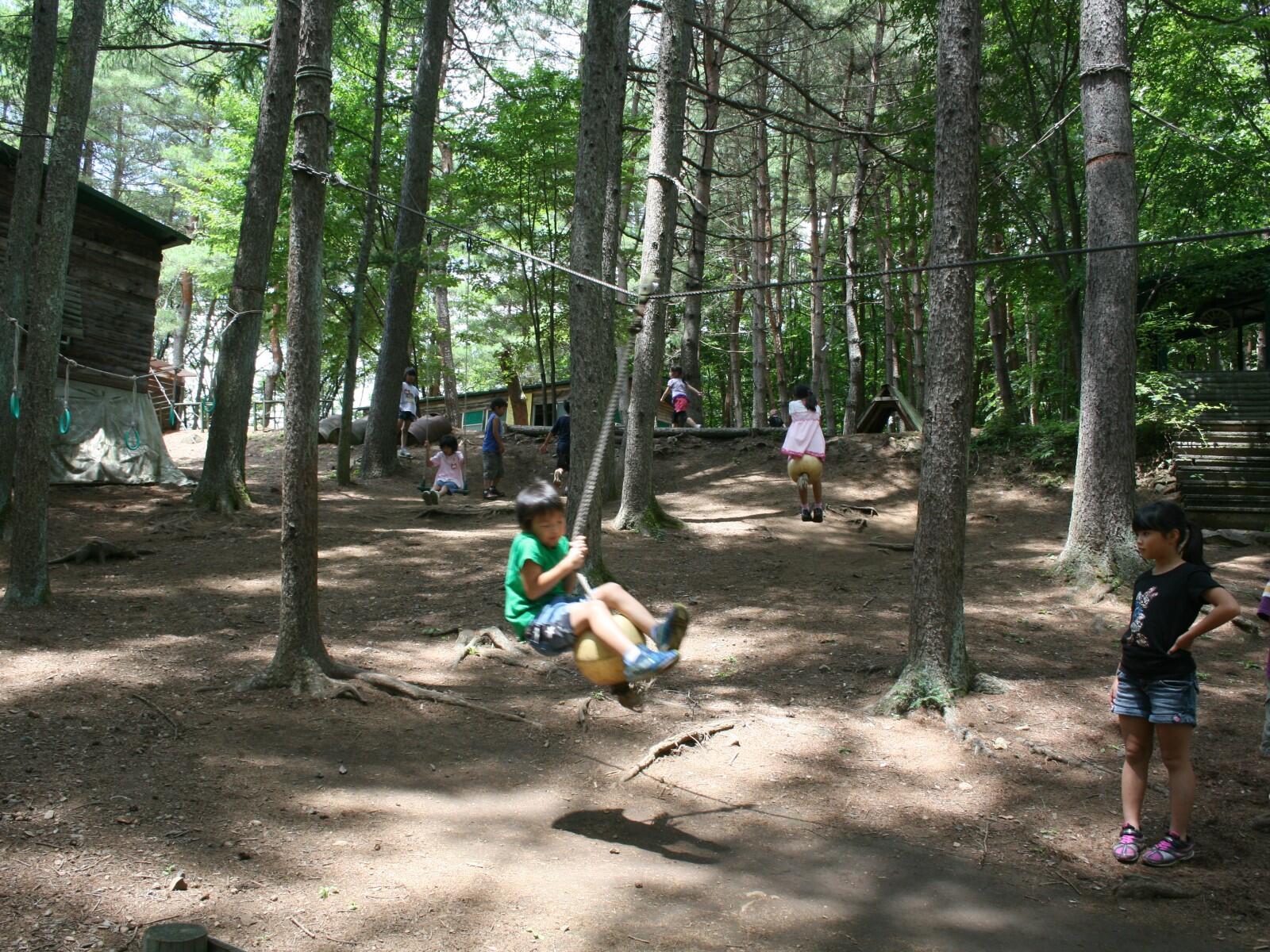 テーブルとチェアのセッティングまでおおよそ1時間半ほどを目安に。設営が終わったら、キャンプ場内を散歩して燃やせそうな薪を見つけたり、アスレチックや釣り堀など設備を楽しみましょう。