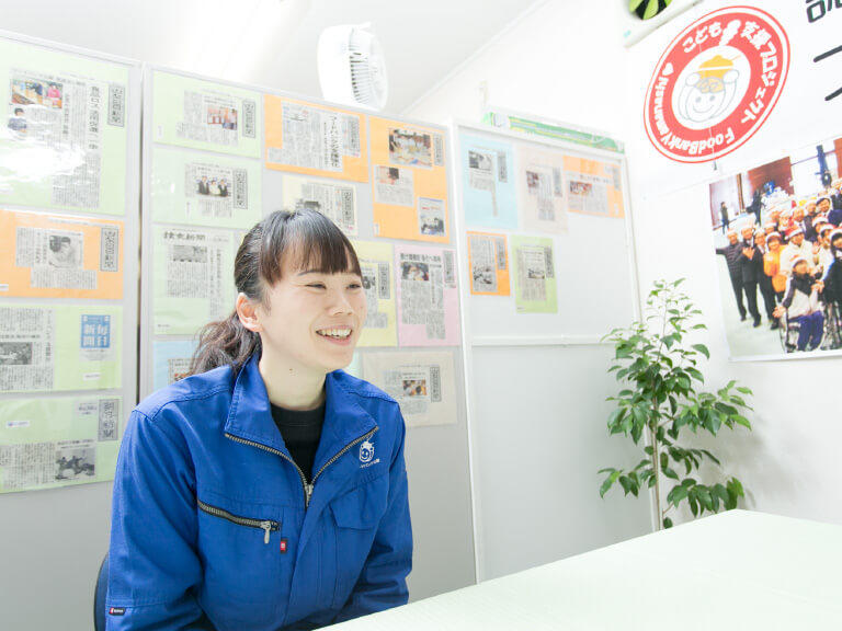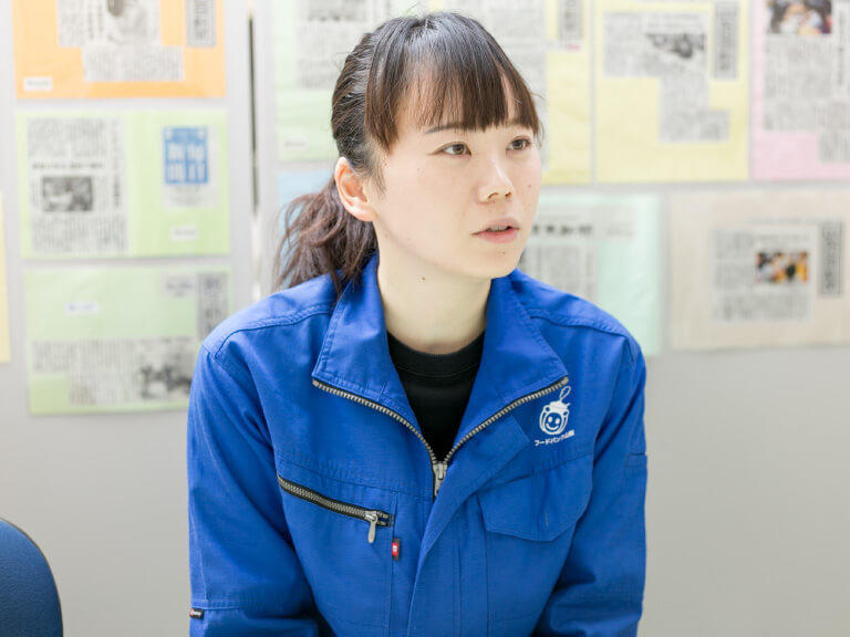 取材に応えてくれたフードバンク山梨の秋山綾乃さん。精神保健福祉士の資格を持ち、フードバンク山梨では事務局次長、渉外担当として働いています。