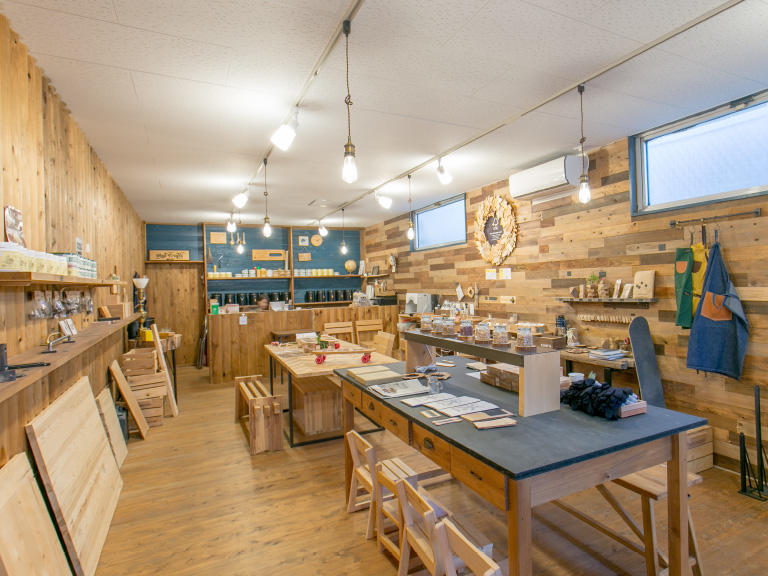 山梨県はFSC認証を受けた認証林が多いため、管理された良質な県産木材が手に入ります。&CRAFTSでは、日常に活かせるFSC認証県産木材を使ったアイテムを制作しています。山本さんの祖父母が製材所を創業し、母は木材加工でインテリアや雑貨を作る会社「シェア・ハピネス」を運営。&CRAFTSはそのプライベートブランドです。ショップではD.I.Y.用の道具や木材も販売していて、オリジナルアイテムから企業とのタイアップ商品、インテリア家具のオーダー制作、販売から内装のディレクションまで請け負っています。その際、タッグを組む企業には加工場も見学してもらい、&CRAFTSのフィロソフィーをまず理解してもらうところからコラボレーションをスタートします。