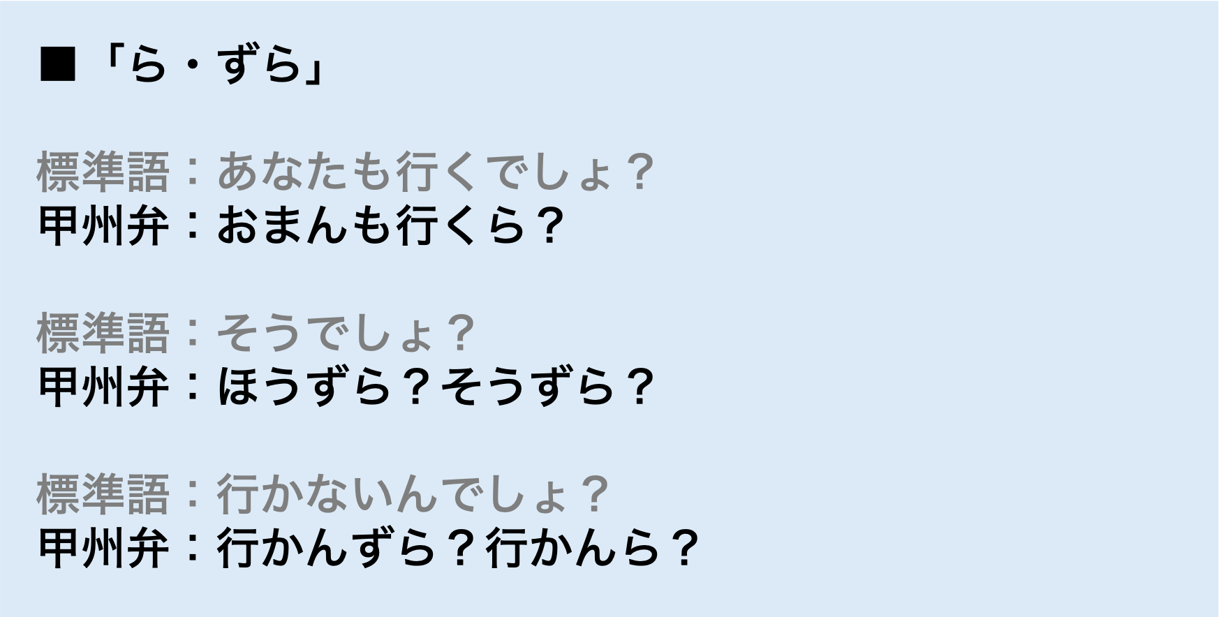 「ら」「じゃん」も甲州弁だよね