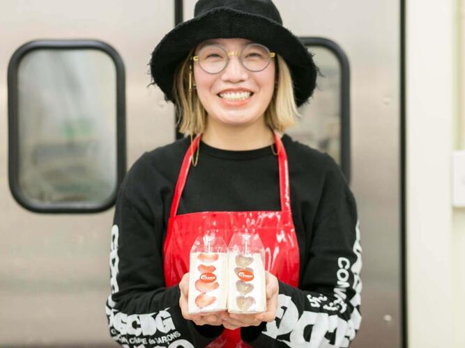 井原さんのフルーツサンドづくりは、コロナ渦の影響で母と共に経営していたラウンジの営業ができなくなり、お店とスタッフを守るために始めたのがきっかけだそう。パティシエの専門学校を卒業し、かつて就職したホテルではフルーツを、都内のカフェベーカリーではサンドイッチを扱っていたという井原さんは、自分の経験とスキルをミックスしてお客さまに「おいしい」と喜んでもらえることが本当に嬉しいと話します。