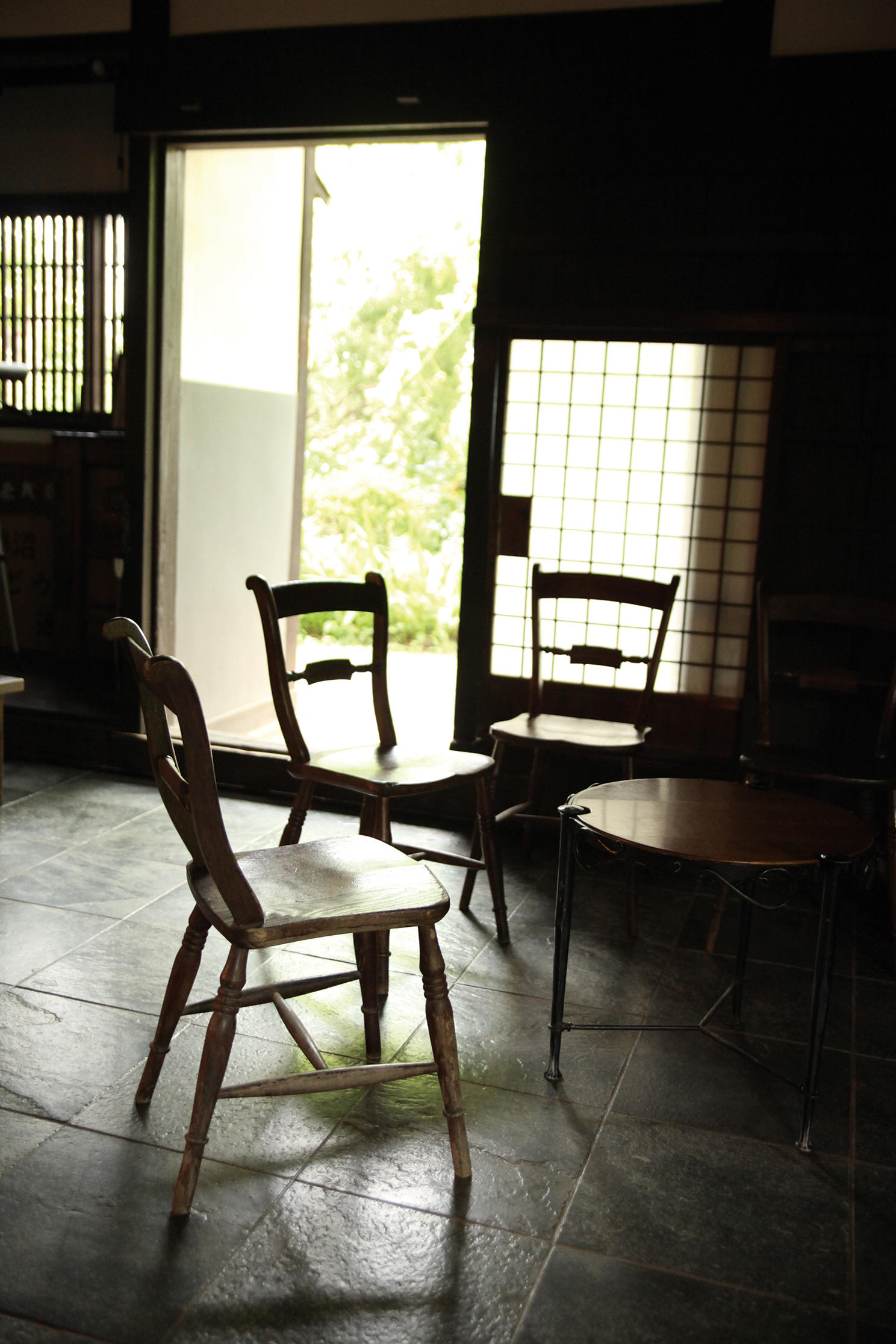 「原茂ワイン」の名前の由来は、昔その地は「原」という地域名で親しまれていて、古屋家の当主が代々伝わる「茂左衛門」の名から「原茂」となったそうです。明治時代から140年たたずむ古民家を改築した建物の一階には、葡萄棚の合間から優しい明かりが差し込みます。静かに和モダンな空間が広がりカウンターでは、ワインのテイスティングが十分に楽しめます。