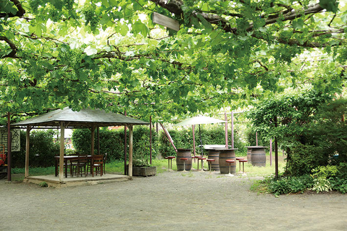 勝沼の葡萄畑のなかをぬって進むと、深い趣きをもって現れるのが「原茂ワイン」です。5メートルほどあろう葡萄棚には、青々と葡萄の葉が茂っていて勝沼の暑い日差しもしばし忘れさせてくれるようなワイナリーです。社長の古屋 真太郎さんは、とても気さくに出迎えてくれました。