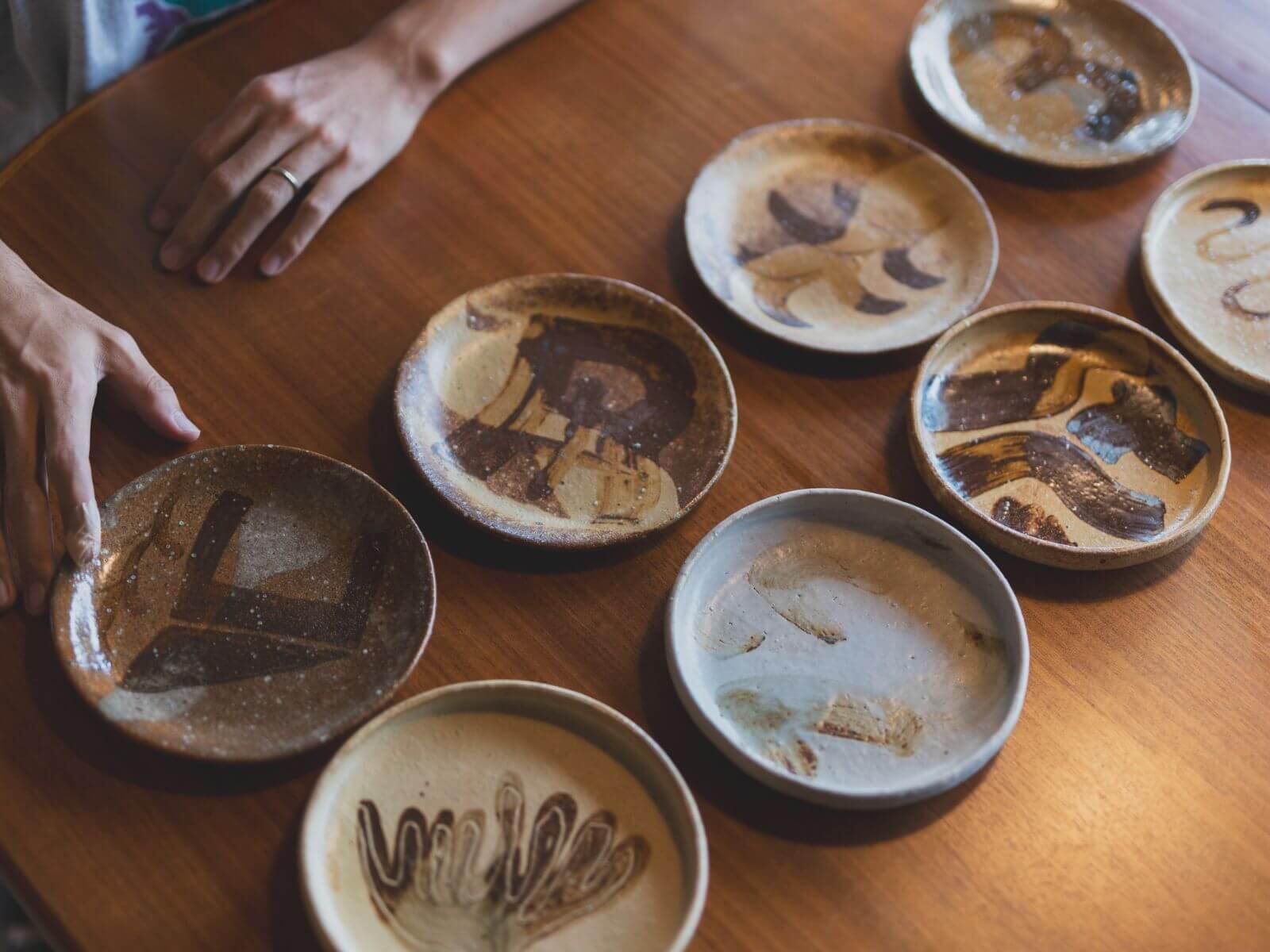 "土着性" は、店のあらゆる空間に息づいています。1Fカフェ&バーの机やカウンターは、地元の材木屋さんの木材を使い、県内で活動する家具職人に制作を依頼。お皿は、熊本の器作家、北川麦彦さんの自然の釉薬を使った一点もの。3F宿泊部分の寝具は、富士吉田の寝装具ブランド「sinso」、カーテンは「Watanabe Textile」に制作を依頼。ひとつひとつに丁寧に向き合ったモノが置かれています。