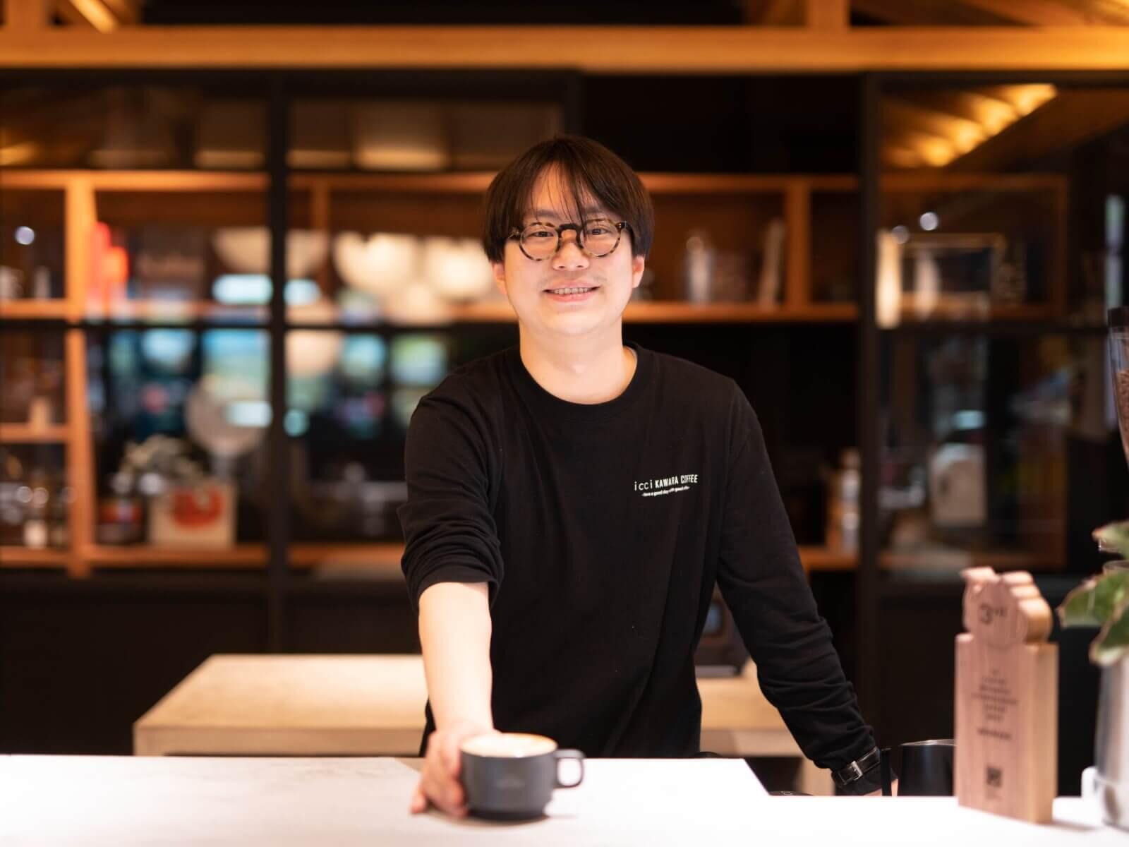 現在icci KAWARA COFFEE SALONでコーヒーを淹れるのは、神奈川出身で横浜と山梨の2拠点で活動している、諏訪勇渡さんです。諏訪さんは3月に行われた第一回COFFEE BREWING TOURNAMENT JAPAN 2023において、第3位という素晴らしい成績を収めた実力派のバリスタです。