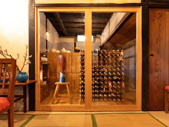 かつて漢方医が住んでいた建物には、薬を保管しておく保冷庫が家の北側に設けられており、カフェではその一角を生かす形でワインセラーとして受け継いでいます。市場ではなかなか手に入りにくいドメーヌヒデのワイン。「月晴れる」では棚田米を使ったメニューとともに、グラスワインでさまざまなワインとのマリアージュを楽しむことができます。