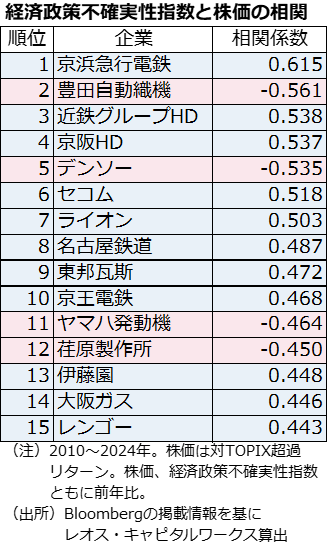 過去、経済政策不確実性指数が高まるときに株価が堅調であった銘柄は?