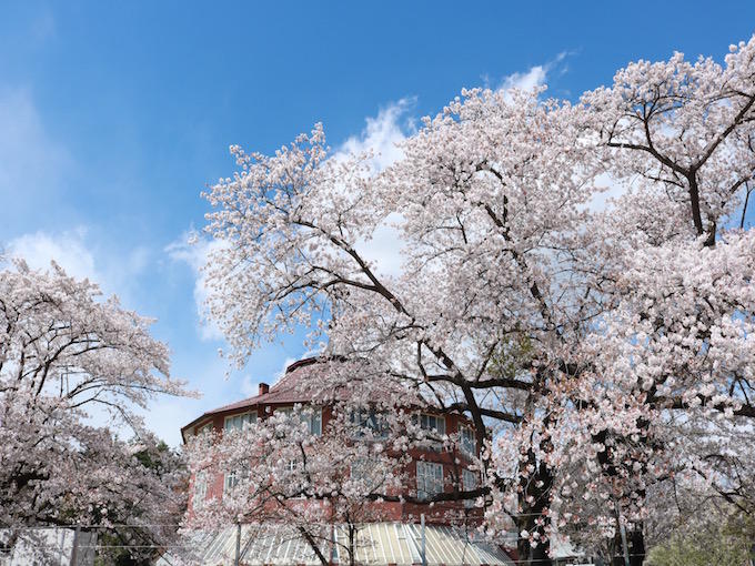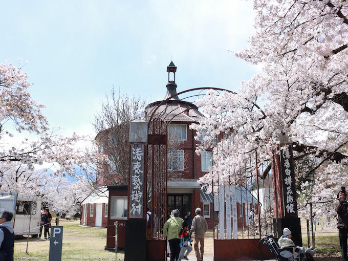 そんなアートの詰まった清春芸術村ですが、春先は山梨県内随一のお花見スポットとしても有名です。大正14年3月、小学校落成記念に植えられた30本のソメイヨシノは、樹齢80年以上になり、県の指定文化財になっています。
