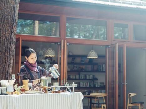 メイン棟から森の木々を眺めながら階段をのぼっていくと、そこはクラウドテラス。雲の上に浮かぶようなウッドデッキで構築されたくつろぎの空間だ。ライブラリーカフェでは本を読みながらコーヒータイム。夜は焚き火を囲んでバータイムとしゃれこみたい。