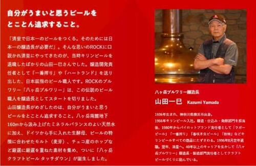 八ヶ岳南麓の地下160mから汲み上げたミネラルバランスの良い天然水に加え、ドイツから仕入れた生酵母、ビールの特徴に合わせたモルト(麦芽)、チェコ産のホップ等を集め製造したクラフトビールです。
